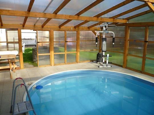 Wellness Jeseníky - sauna pro 3 osoby, masážní sprchový box, vířivka pro 4 osoby. Přes letní měsíce je možné využít venkovní zastřešený rodinný bazén. | |