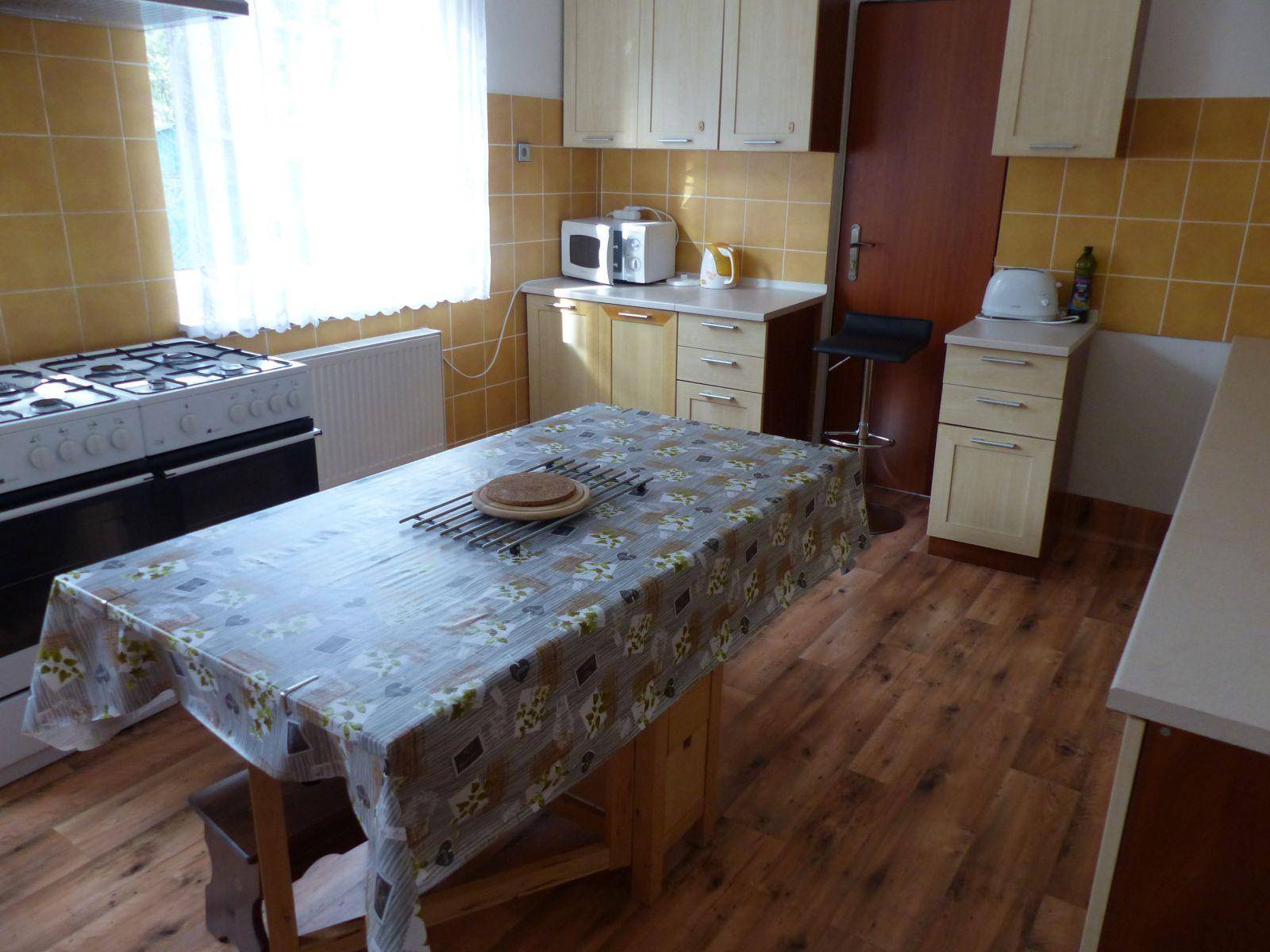 Pokoje mají vlastní sociální zařízení. Jsou vybaveny běžným nábytkem a lednicí. Na pokojích není možná příprava jídel. K dispozici je plně vybavená společná kuchyň, kde má každý pokoj vlastní skříňku s kompletním nádobím. V objektu je i samostatná místnost určená pro úschovu lyží, kol apod. Základní kapacita penzionu je 24 osob. Dispoziční řešení objektuPřízemí: